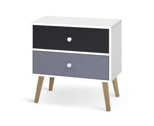 The splayed legs add a unique stance to this bedside table that also comes with classic knob handles and smooth anti-rust metal drawer slides for hassle-free use. Not least, ample storage space is found with the two drawers for all your bedside or personal essentials. For everything that needs to be close at hand anytime, this bedside table is the convenient one to facilitate your requests.